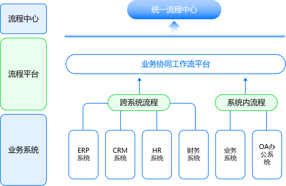 各业务系统独立搭建流程,流程割裂,跨系统对接频繁,缺乏同意标准,功能重复开发,流程打通成本高。